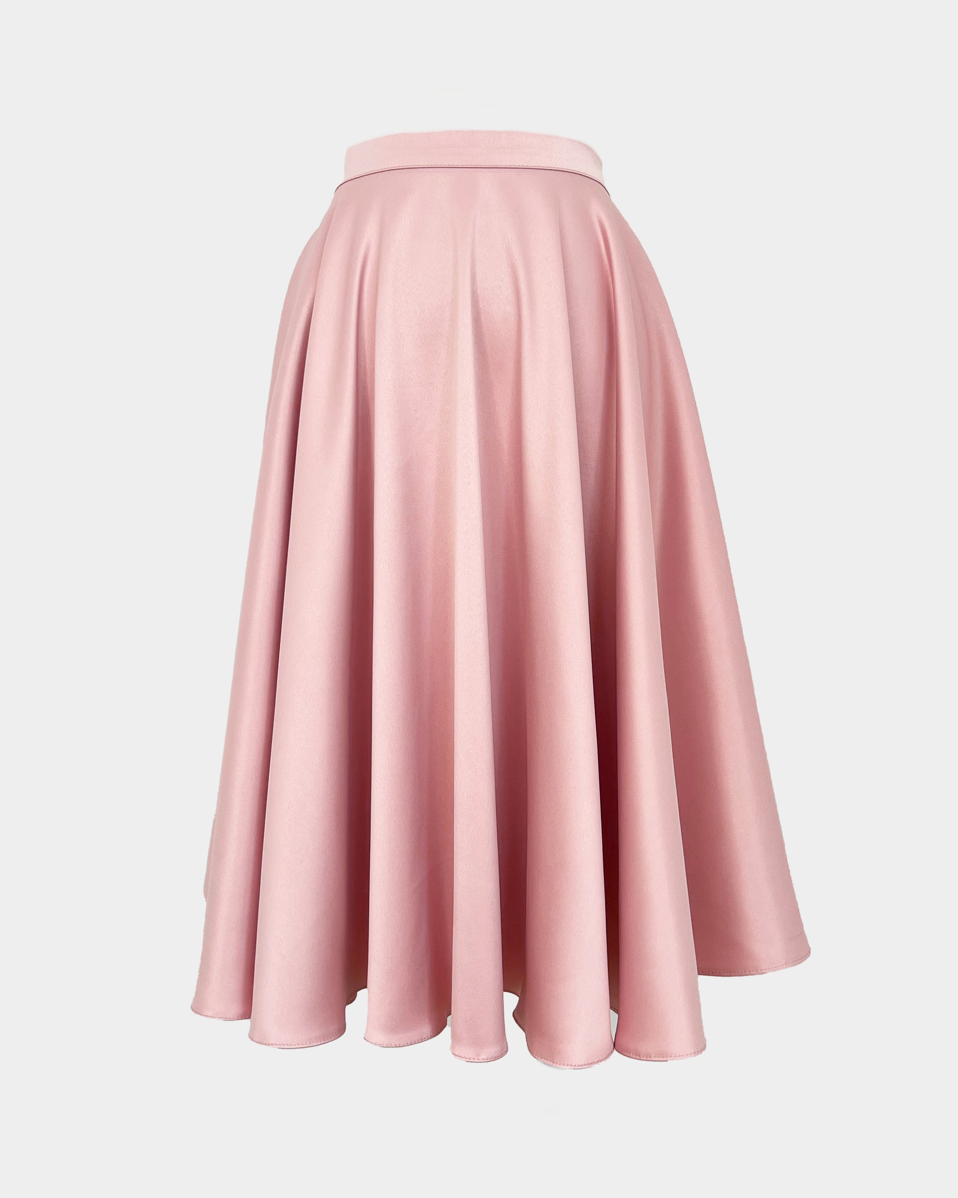 Blending elegance with a touch of playfulness, the Pink Midi Skirt is crafted from lustrous taffeta that shimmers softly in the light. Its high-waisted, A-line silhouette flatters the figure, while the midi length offers graceful movement with every step.