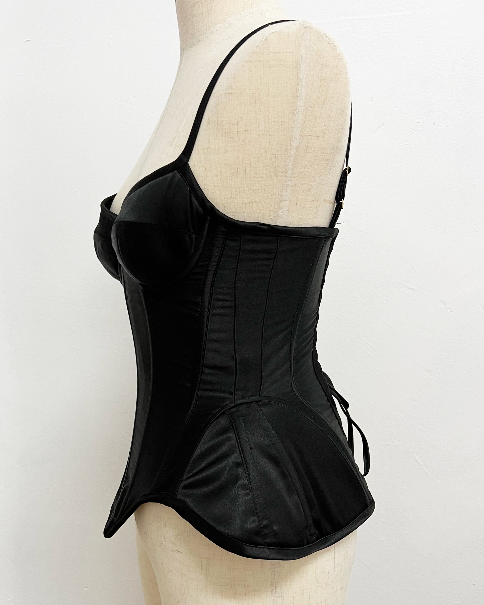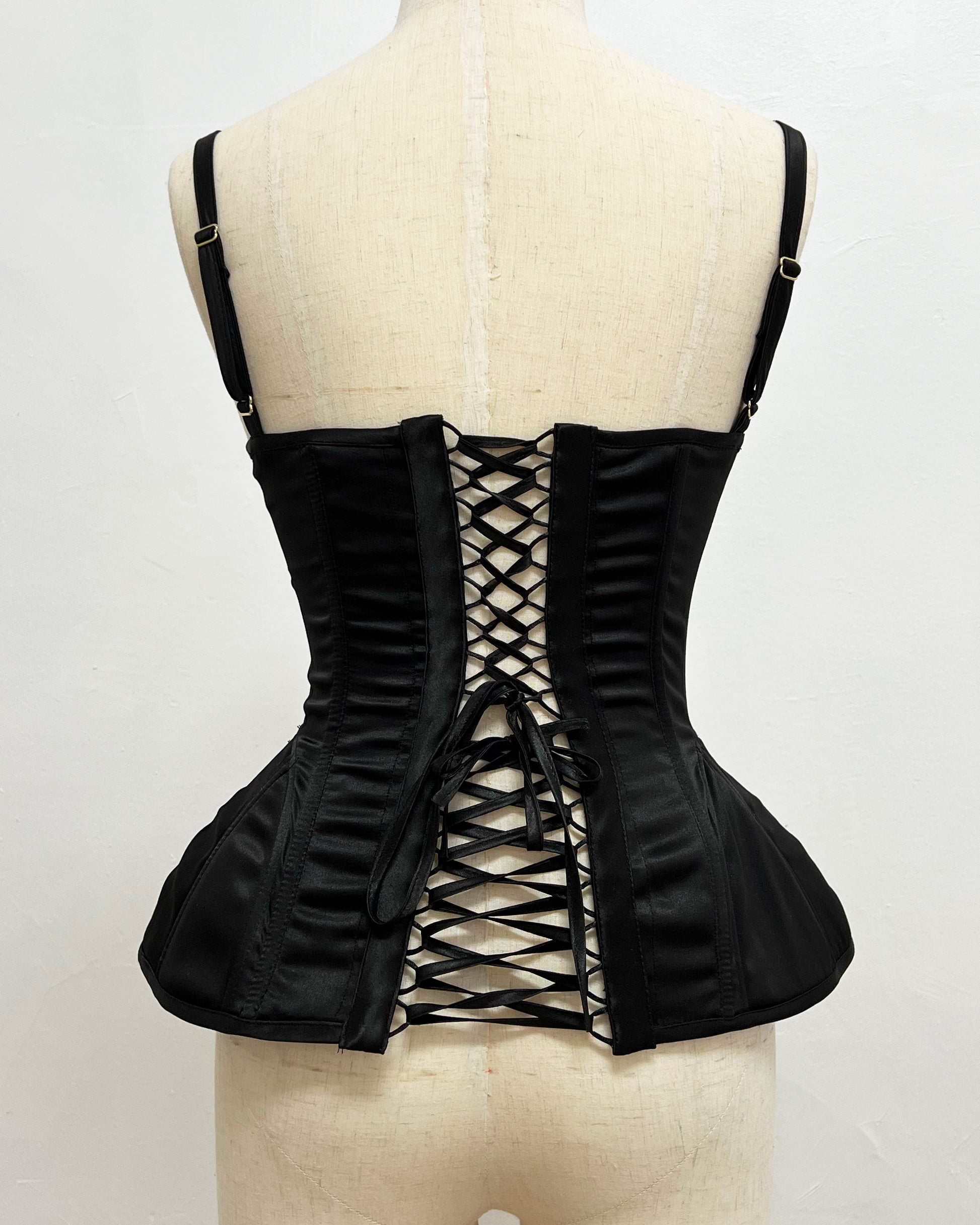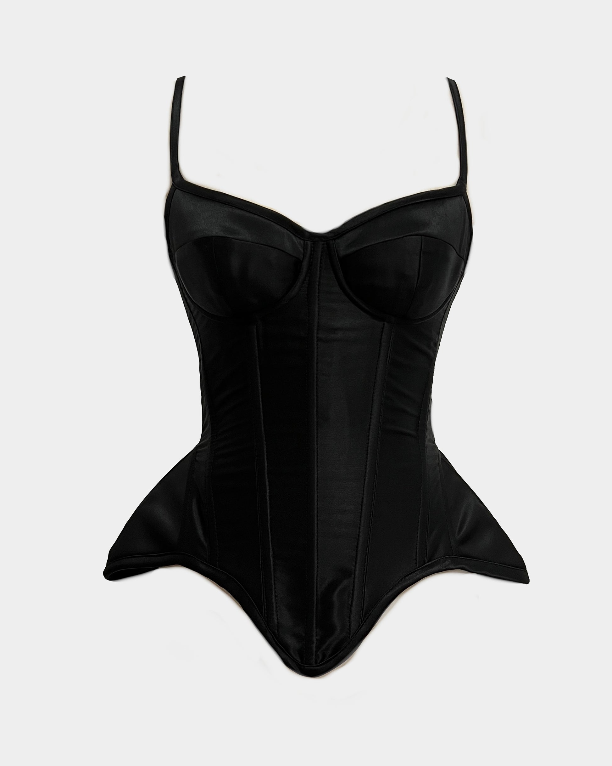 - structured corset-style top with high-strength synthetic boning