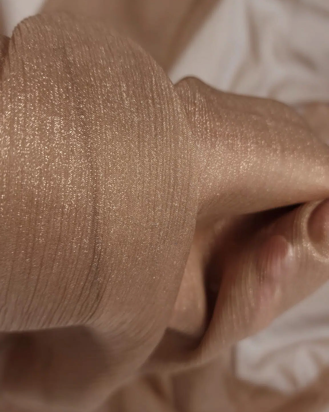 As ethereal and sophisticated piece designed for the woman who cherishes natural elegance and refined details. Crafted from coated natural silk, this dress catches the light with a subtle shimmer while maintaining the airy fluidity of pure silk. The hand-draped bodice gracefully enhances the feminine silhouette, while the delicate double straps add a refined and effortless charm. The flowing midi-length skirt moves beautifully with every step.