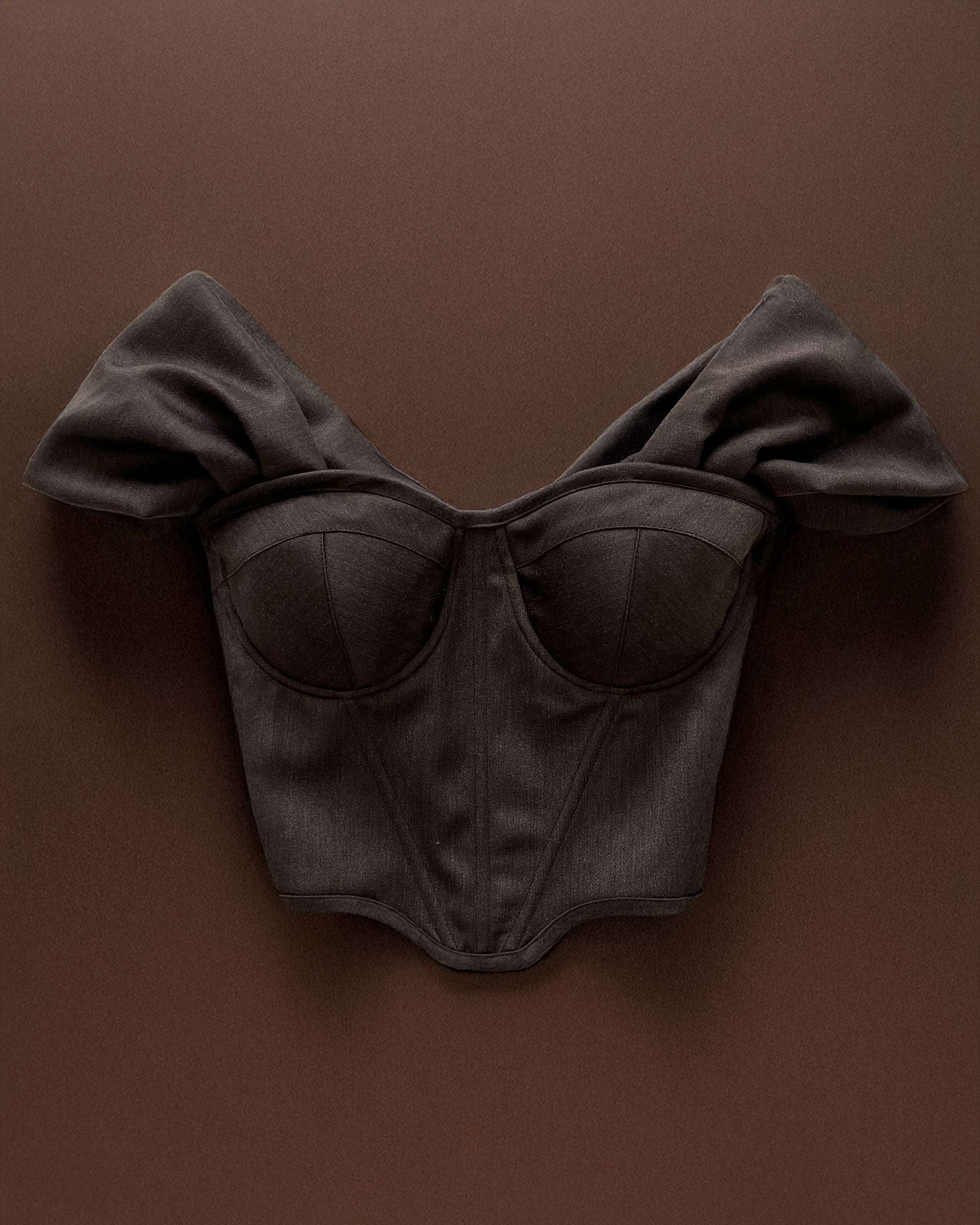 Wool Blend BrownStep into spring with a touch of romance and timeless elegance. This rich brown wool blend corset is a celebration of soft femininity, meticulously handcrafted in Romania from sustainable fabrics. Designed to flatter and sculpt, it features structured boning, a sweetheart neckline, and a smooth satin finish that catches the light beautifully. Limited Edition Collection.