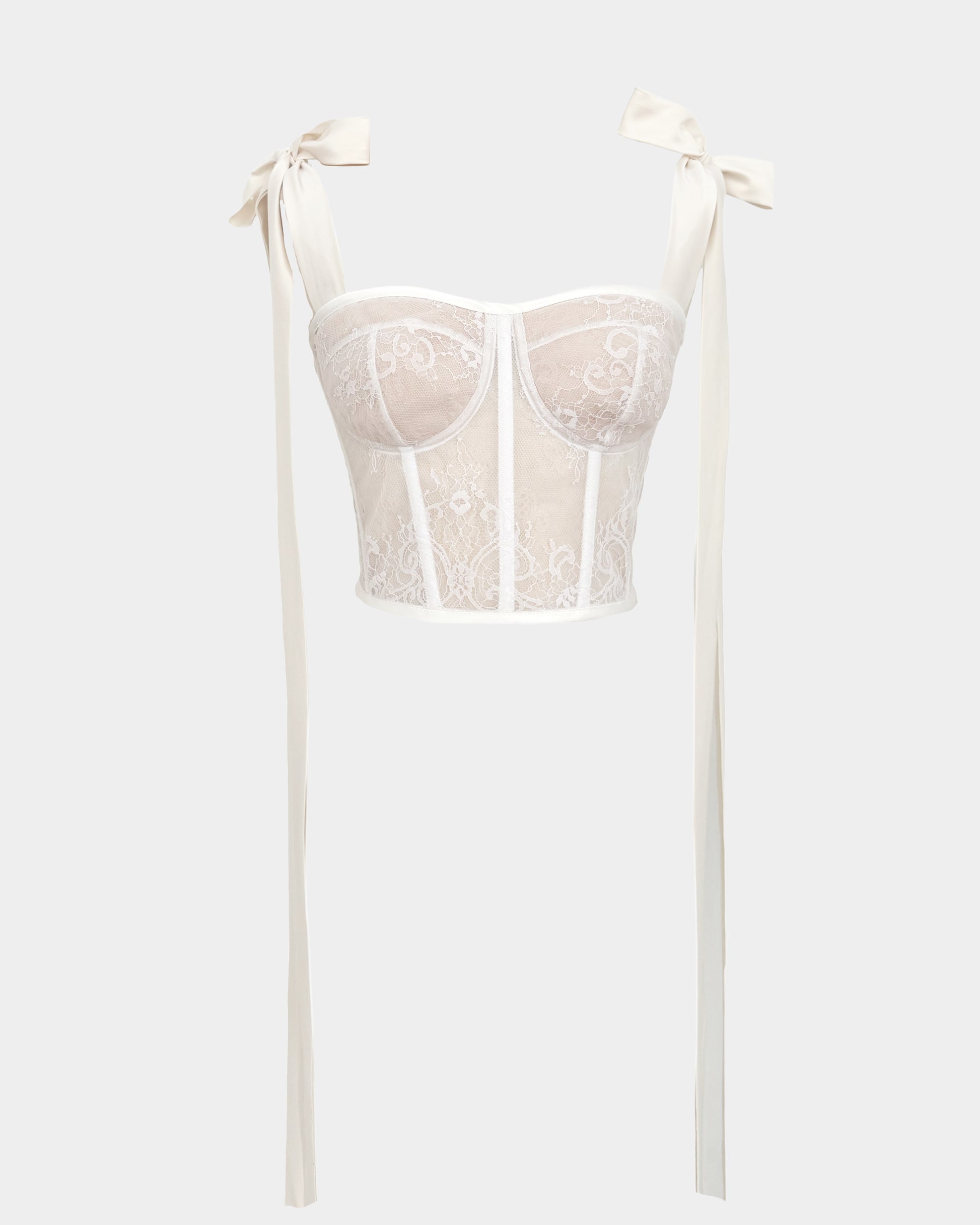 Adjustable shoulder straps in an intense red tone are finished with feminine ties, allowing for a customizable fit while reinforcing the romantic aesthetic of the piece.