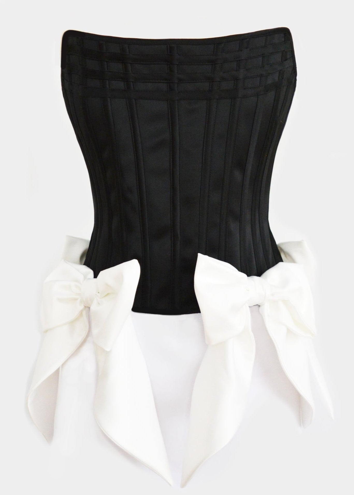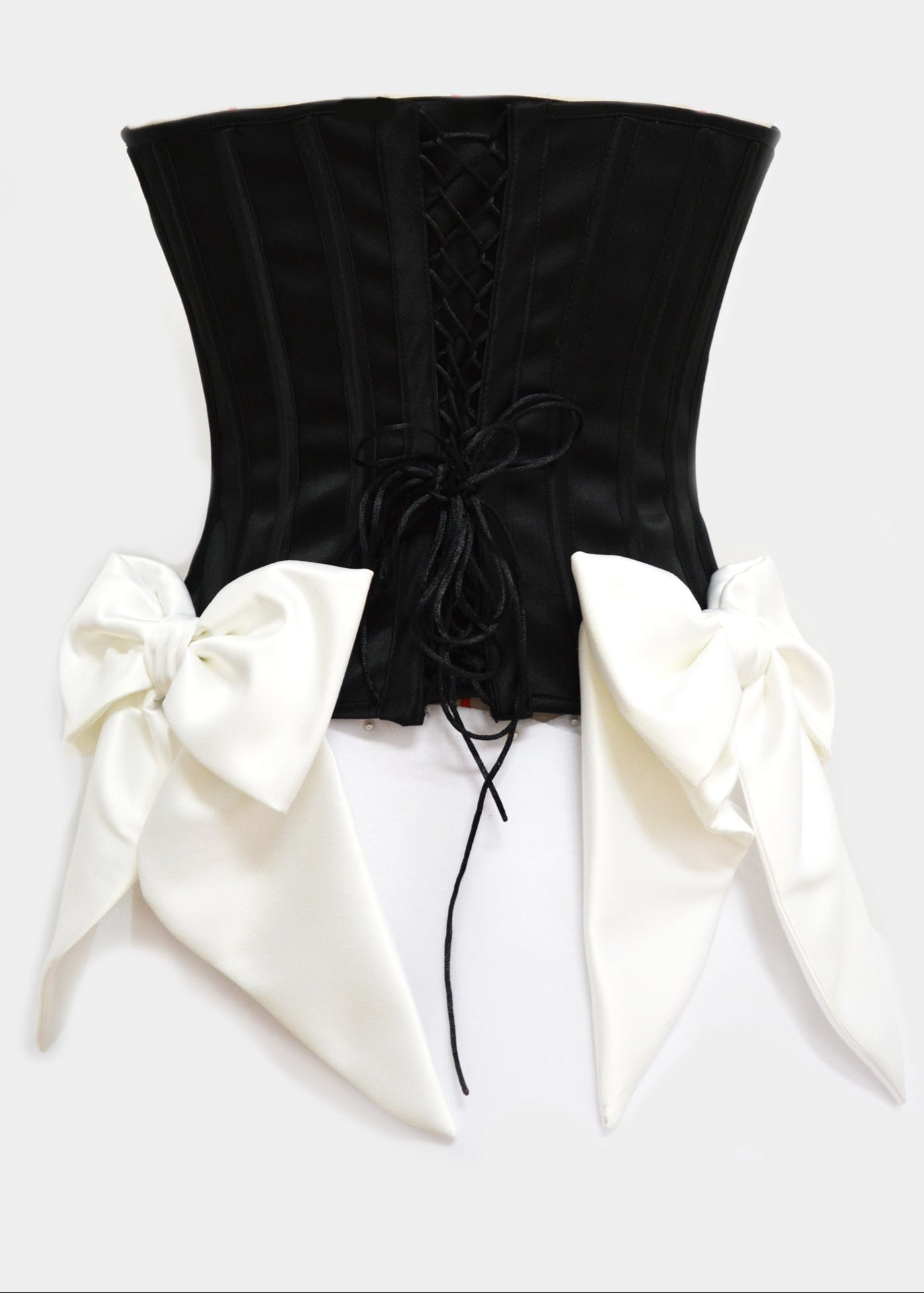 BLACK SATINATED CORSET TOP WITH WHITE BOWS