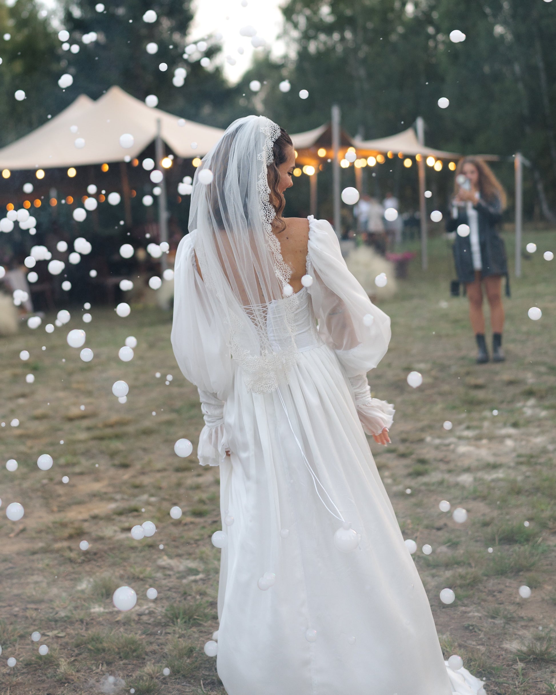 A wedding dress crafted from natural silk, designed with couture structure and contemporary reinterpretations of traditional heritage details.