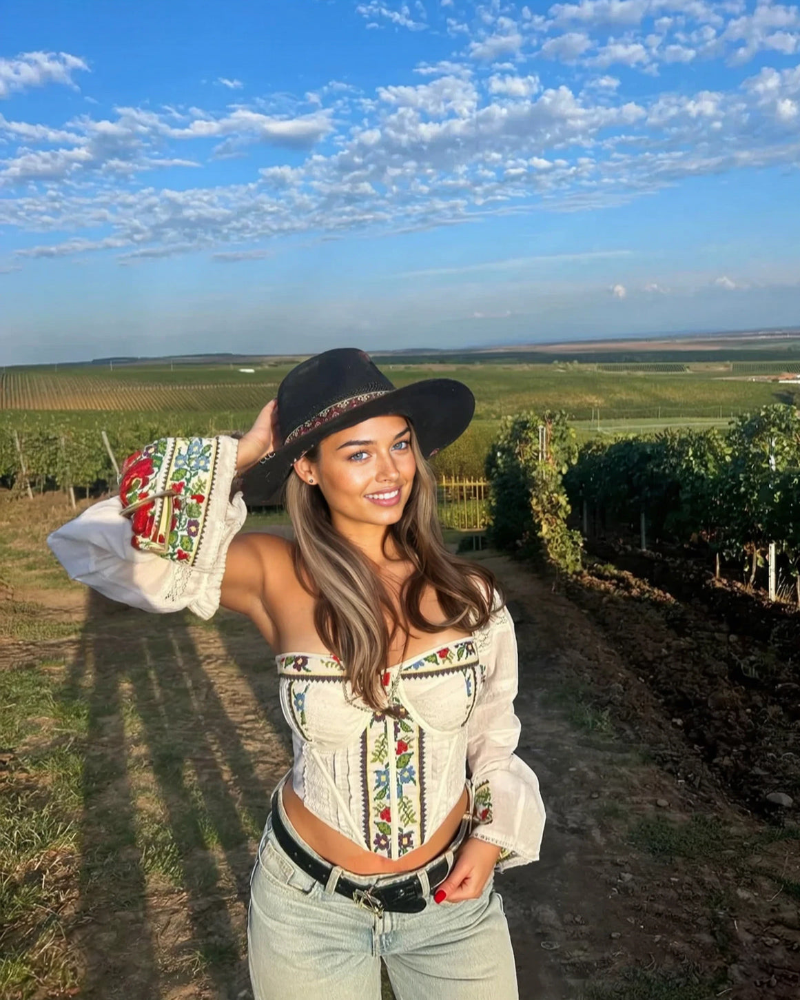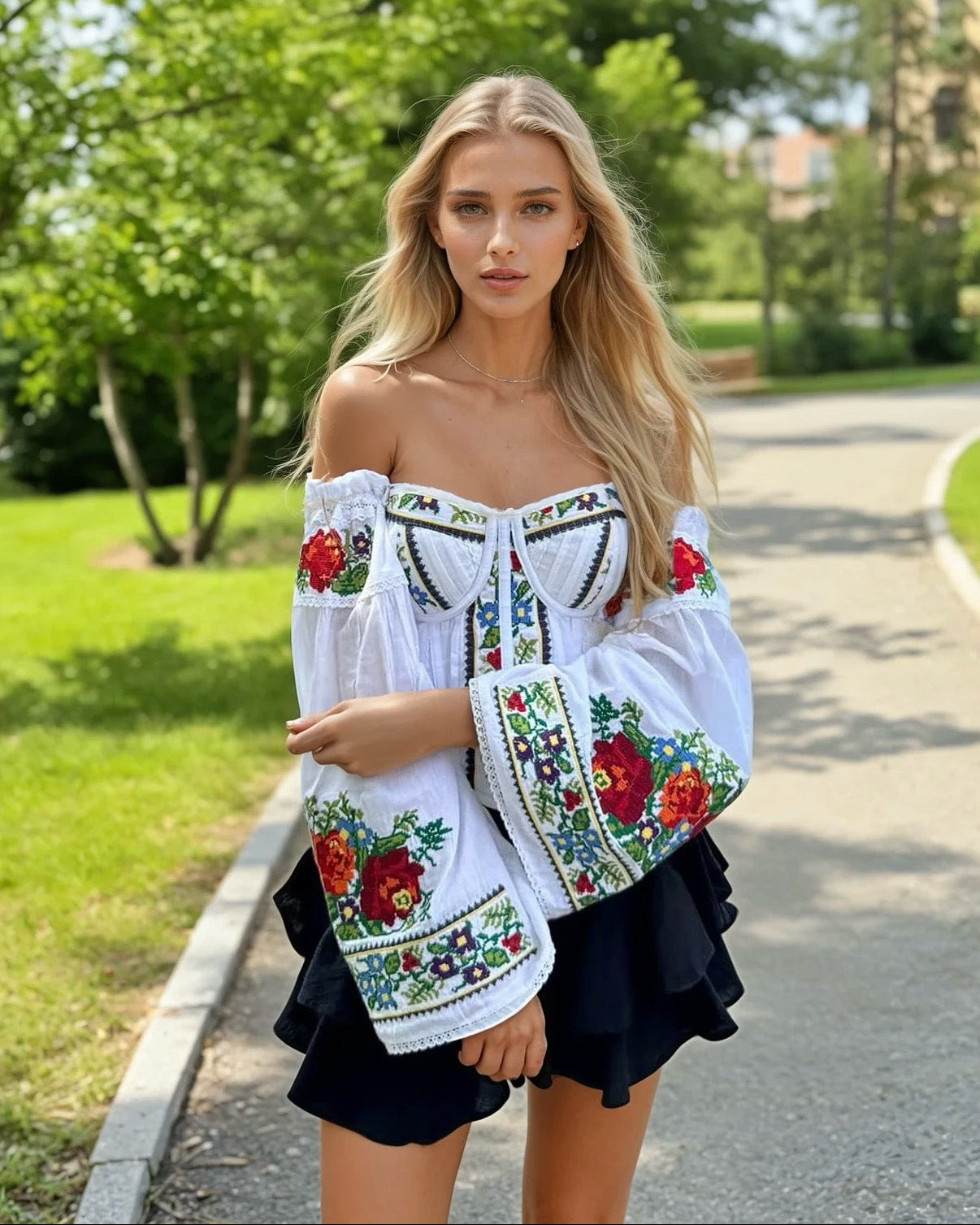 A masterpiece of tradition and innovation, this corset is the first in the world to transform the iconic Romanian blouse into a modern silhouette. Handcrafted with care, it preserves the delicate embroidery and cultural essence of ie, reinterpreted for the bold, contemporary woman.