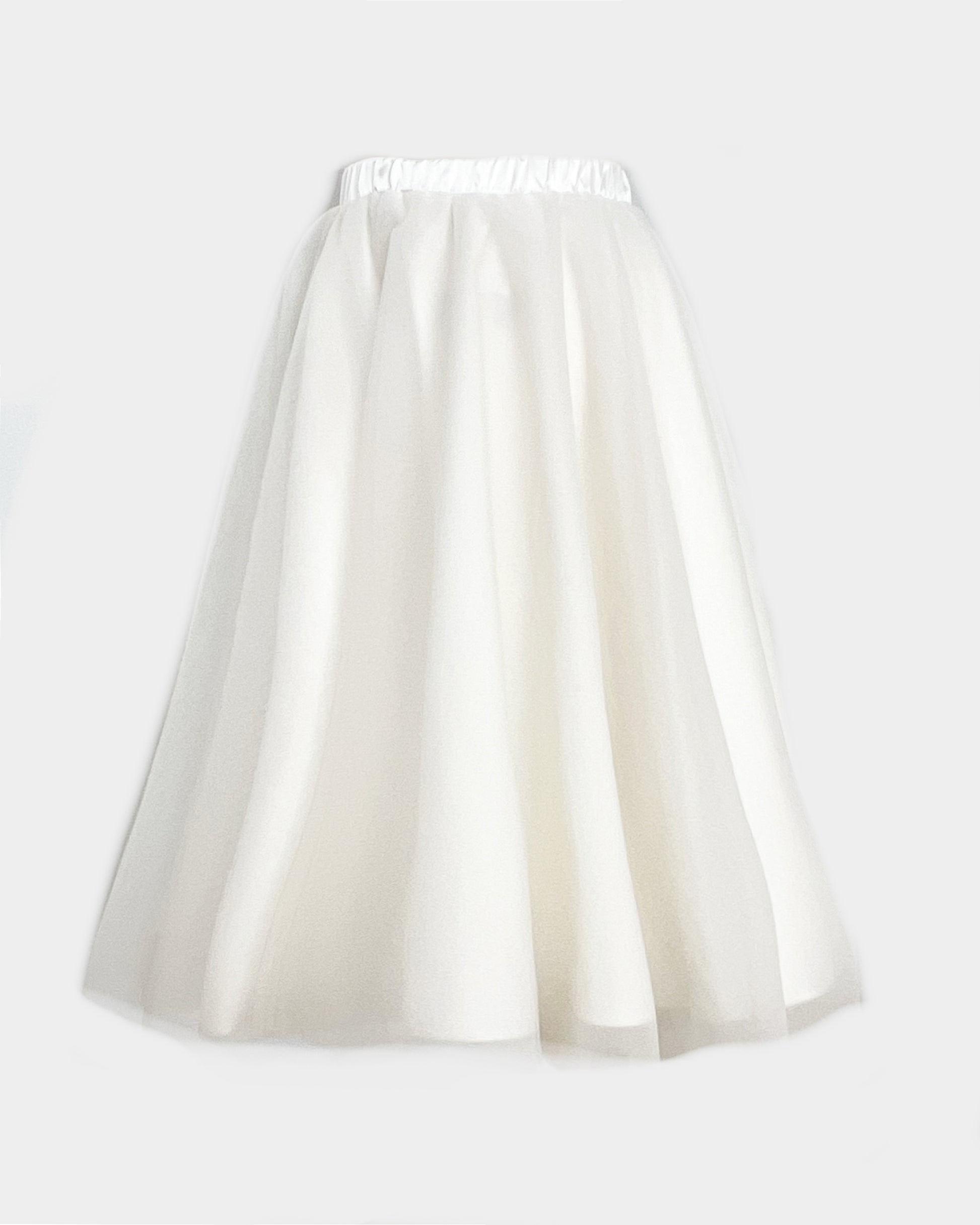 Float into elegance with this ethereal Oana Nutu midi skirt, crafted from layers of soft white tulle. Designed with a flattering elastic waistband for effortless comfort, it cascades into a voluminous silhouette, perfect for creating a statement look. Lenght is 65 cm. Delicate gathered tiers add subtle structure and movement, making every step feel like a dance. Elasticated band.