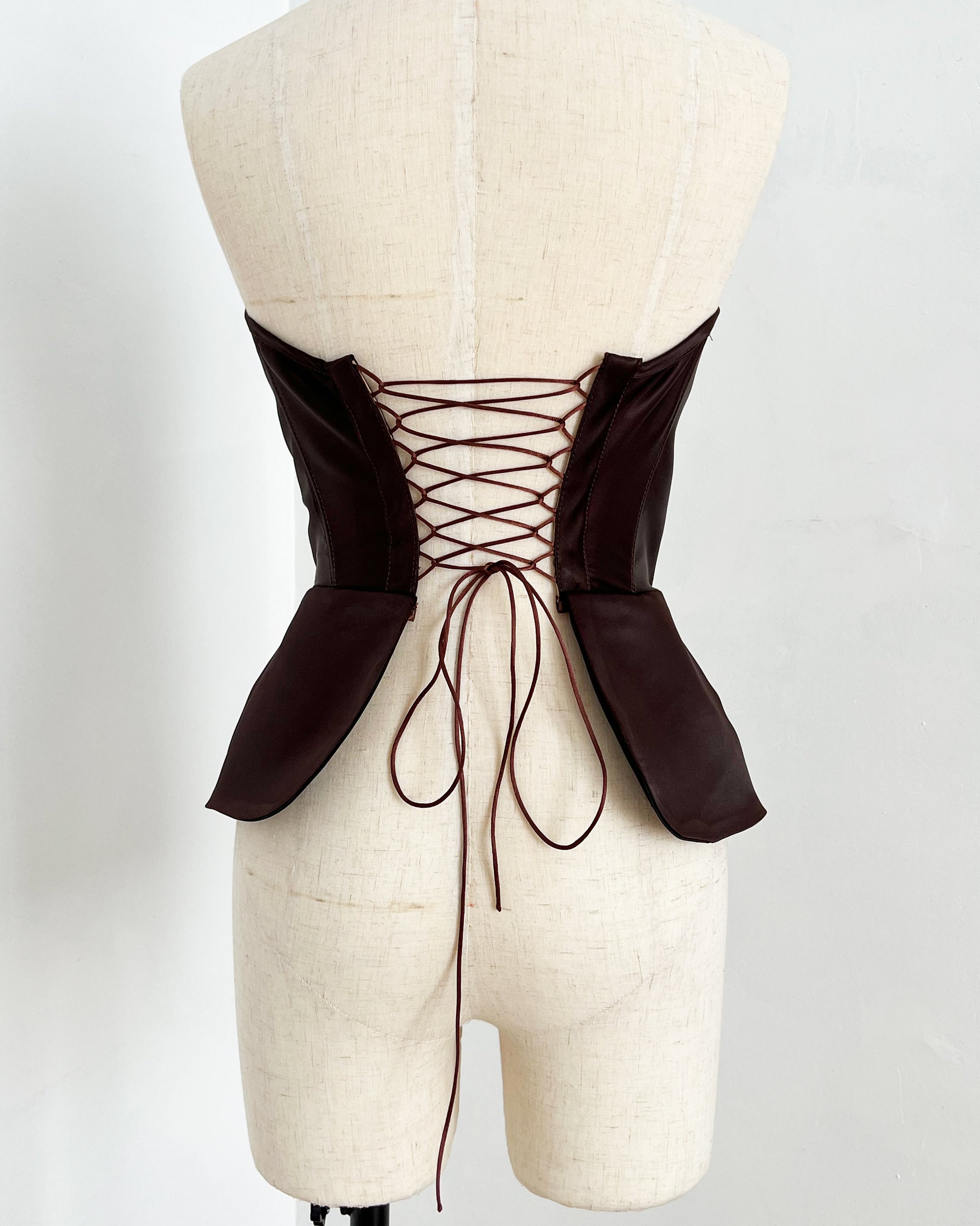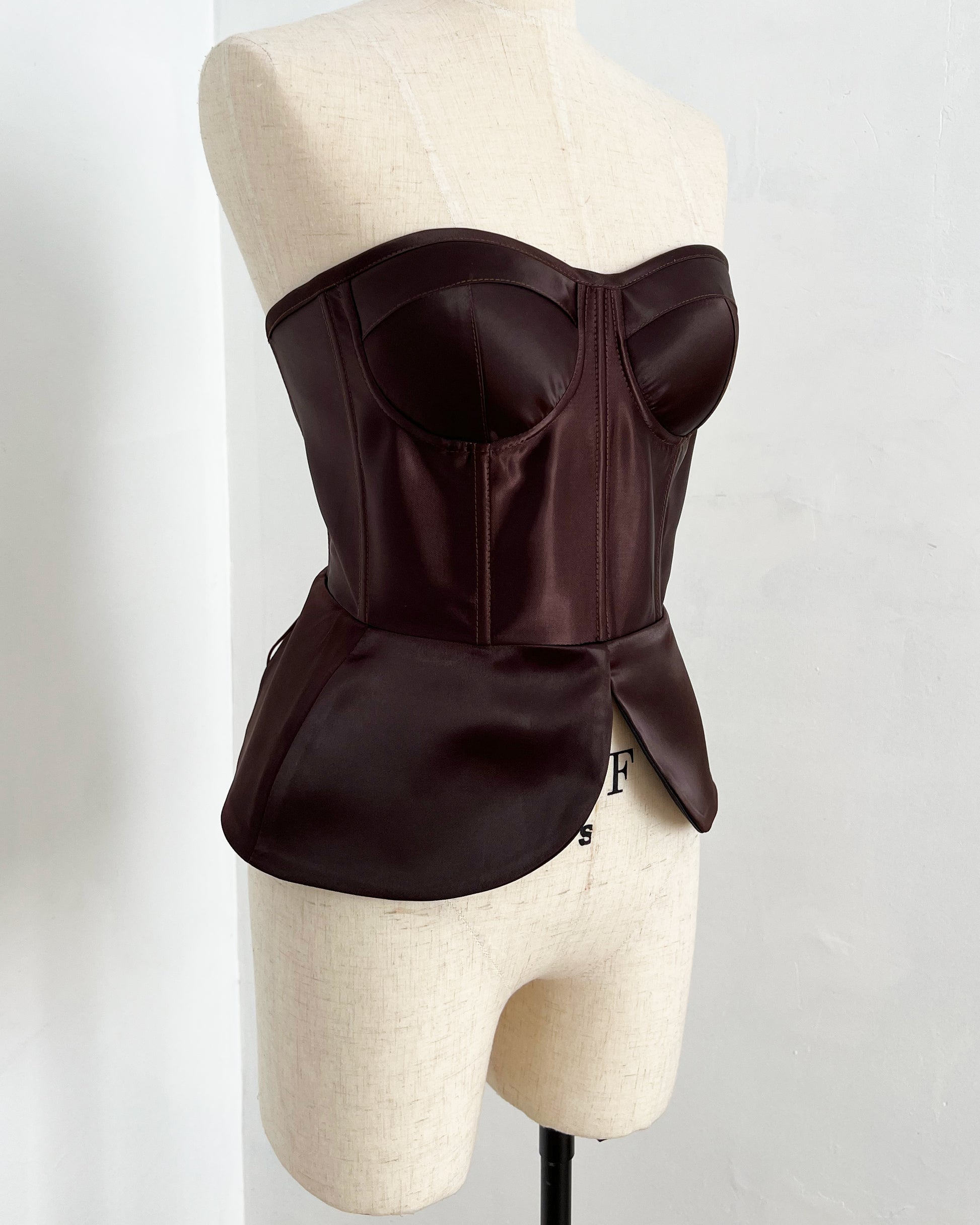 With its structured bodice, defined cups, and bold peplum detail, this piece celebrates the duality of femininity — delicate yet unyielding, refined yet daring. Each seam and curve is meticulously crafted, transforming the corset into more than a garment: a symbol of confidence, beauty, and artistry.